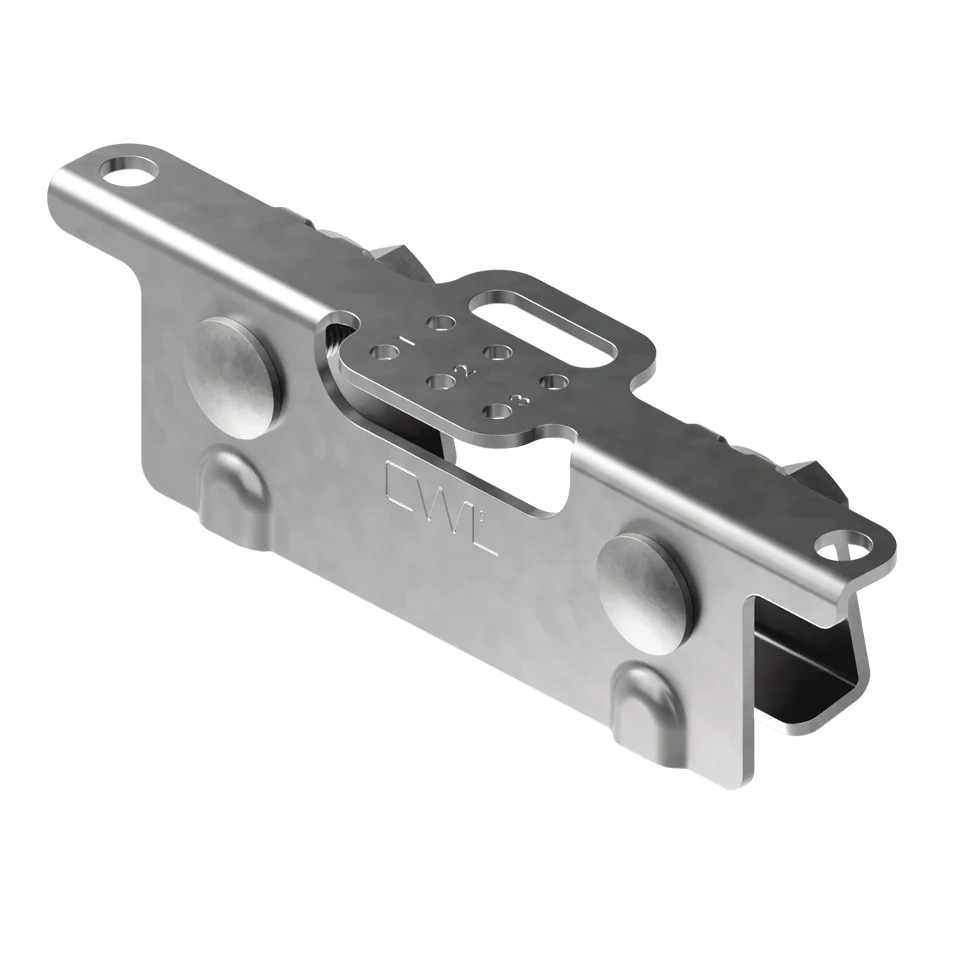 Universalfäste för enkel- och dubbelfals samt klicktak. Hålbilden hjälper montören till rätt placering och snabb installation.